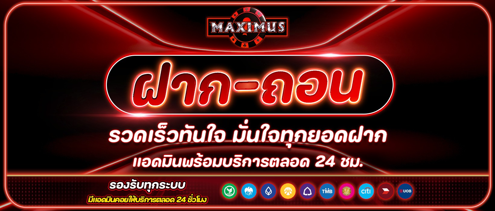 Maximus เว็บพนันออนไลน์ที่กำลังมาแรง แพลตฟอร์มครบวงจรพร้อมเกมส์ฮิตทั้งสล็อต บาคาร่า กีฬา และคาสิโนสด ระบบฝาก-ถอนเร็ว ปลอดภัยด้วยเทคโนโลยีล่าสุด โบนัสสมาชิกใหม่สูงสุด 300% พร้อมโปรโมชั่นจัดเต็มทุกสัปดาห์...